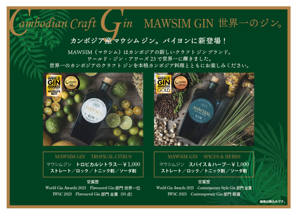 2024年12月からはカンボジア生まれの世界一のジン「マウシム ジン」も登場しました。
